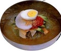 冷麺 中国東北地方の延辺朝鮮族自治州にルーツを持つ中国料理の冷麺で、そば粉を使ったコシのある黒っぽい麺と、甘酸っぱくさっぱりとした牛骨ベースのスープが特徴です。 |